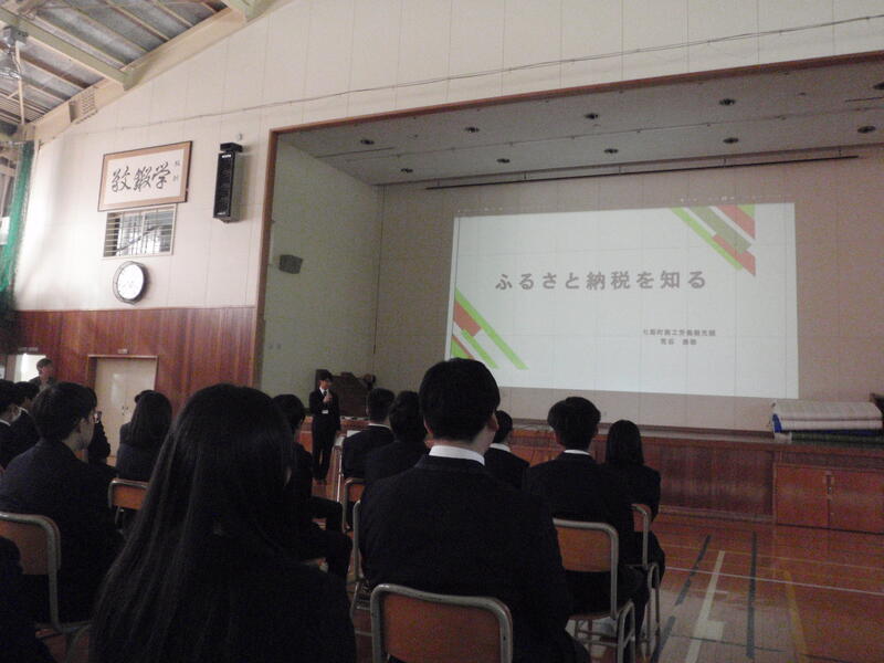 まずは、「七飯町役場」、「ぽぽろ館」、「聖樹の杜」、「jimo豆腐」、「鹿部町観光協会」の方々からふるさと納税に関する話を聞き、探究活動に向けて準備を始めました。
